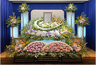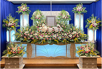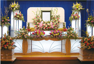 花々が織りなす優美な祭壇。送る思いを花に託して。